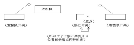 ①在左限開關(guān)至原點(diǎn)之間機(jī)臺停止時(shí)沒有碰到左右限開關(guān)時(shí)按下機(jī)械歸位將會回至初始位置注:必須是按過一次原點(diǎn)歸位之后機(jī)械歸位開關(guān)才起作(所回到原點(diǎn)位置是偏擺初始位置設(shè)置的長度即是原點(diǎn)位)。例圖: